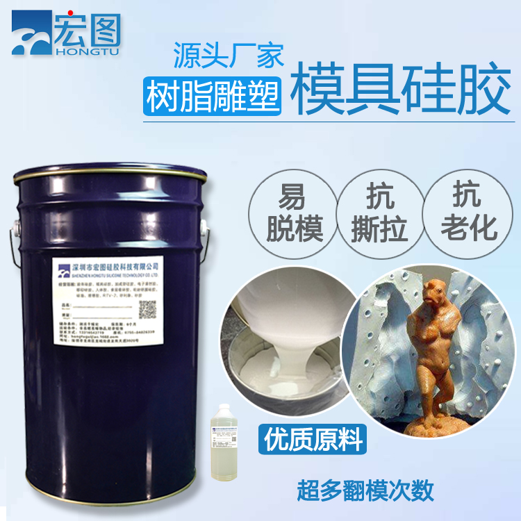 樹脂雕塑模具硅膠有加成型模具硅膠和縮合型模具硅膠兩種,前者屬于食品級硅膠,與固化劑的配比為1:1。后者屬于工業(yè)級硅膠,與固化劑的配比為100:2-3。