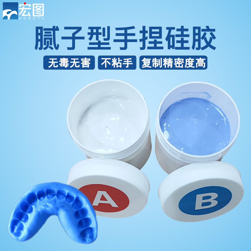 手捏硅膠是雙組份室溫固化硅橡膠,固化前A,B組分為膩?zhàn)有停ㄜ浤酄睿?,混合后可快速固化,固化后具有一定的彈性和硬度,并且具有極低的成型收縮性和存儲(chǔ)穩(wěn)定性。利用其方便的可塑性可便捷地復(fù)制出所要空間的形態(tài),得到物體一定空間的仿制體,進(jìn)而可以測量所需部位的尺寸。對(duì)于那些難以用工具直接測量的所需部位,利用該材料能方便的完成測量。