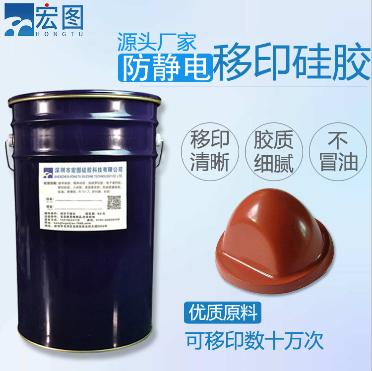 防靜電移印硅膠是一種雙組份加成型硅橡膠,分別是以A、B組分包裝的具有流動性的液體硅膠,可制備優(yōu)異的移印彈性材料。膠質(zhì)細(xì)膩,無雜質(zhì),回彈力好,移印圖案清晰,是制作膠頭的首選環(huán)保材料!
